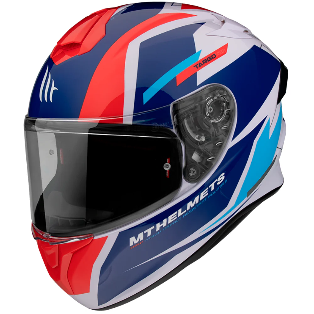 El nuevo MT TARGO PRO es la versión más deportiva del MT TARGO, al incorporar un nuevo alerón trasero. El TARGO PRO es un casco con una terminación increíble. Incorpora la nueva pantalla V-14, de 2,2mm de grosor, con nuevos mecanismos de fácil extracción y cierre perfecto, apertura central, ventilación interna, cierre micrométrico metálico y ventilaciones pintadas al color del casco.
