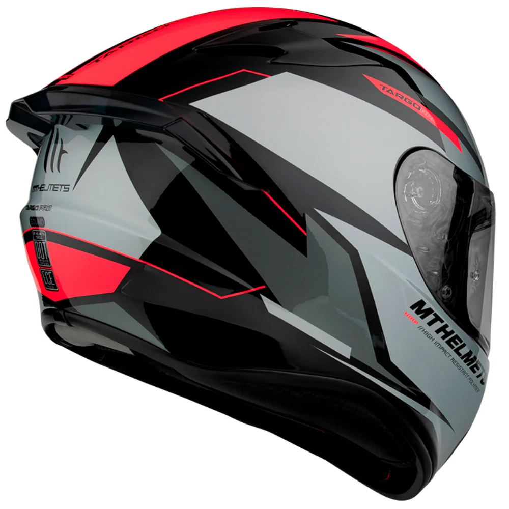 El nuevo MT TARGO PRO es la versión más deportiva del MT TARGO, al incorporar un nuevo alerón trasero. El TARGO PRO es un casco con una terminación increíble. Incorpora la nueva pantalla V-14, de 2,2mm de grosor, con nuevos mecanismos de fácil extracción y cierre perfecto, apertura central, ventilación interna, cierre micrométrico metálico y ventilaciones pintadas al color del casco.